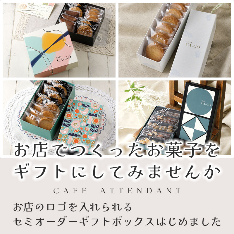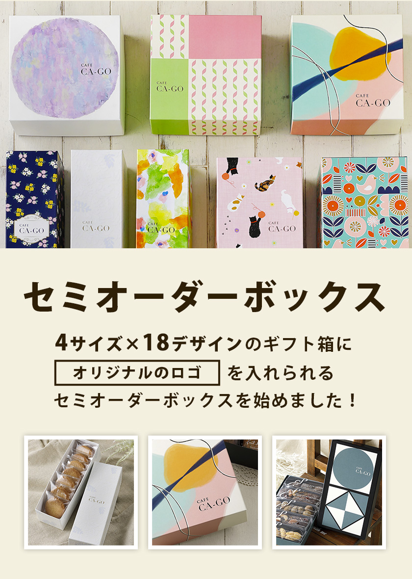 色々なサイズとデザインの箱に、お店のロゴを入れられるオリジナル箱をお楽しみください。